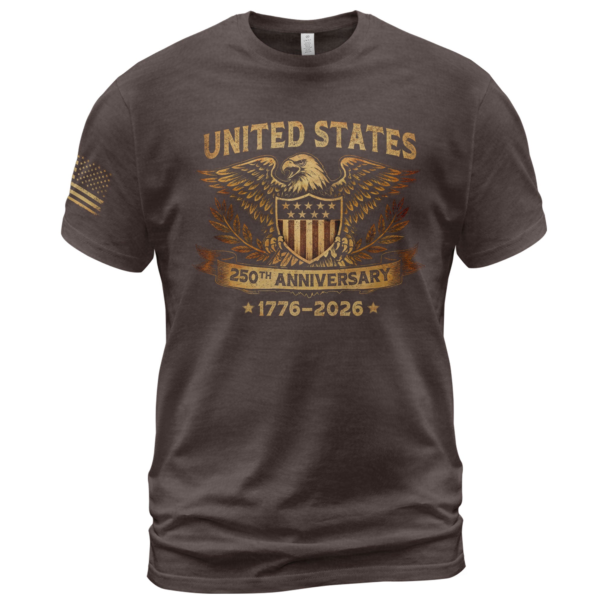 Strength, honor, and unity.Eagle with shield and laurel wreath symbolizes protection, victory, and national pride. This bold design commemorates 250 years of American freedom with confidence and tradition.